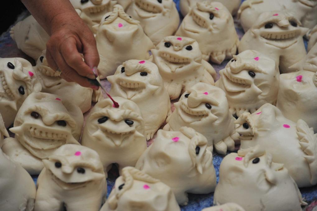 2016年6月7日,在山西晋南运城市新绛县泽掌村一家蒸馍店,一名村民在给蒸好的“老虎馍”“点红”。端午节临近,山西晋南地区的城乡居民开始制作或购买老虎造型的晋南花馍“老虎馍”,用来在端午节敬奉先祖,祈福平安吉祥。晋南花馍已入选国家级非物质文化遗产名录。