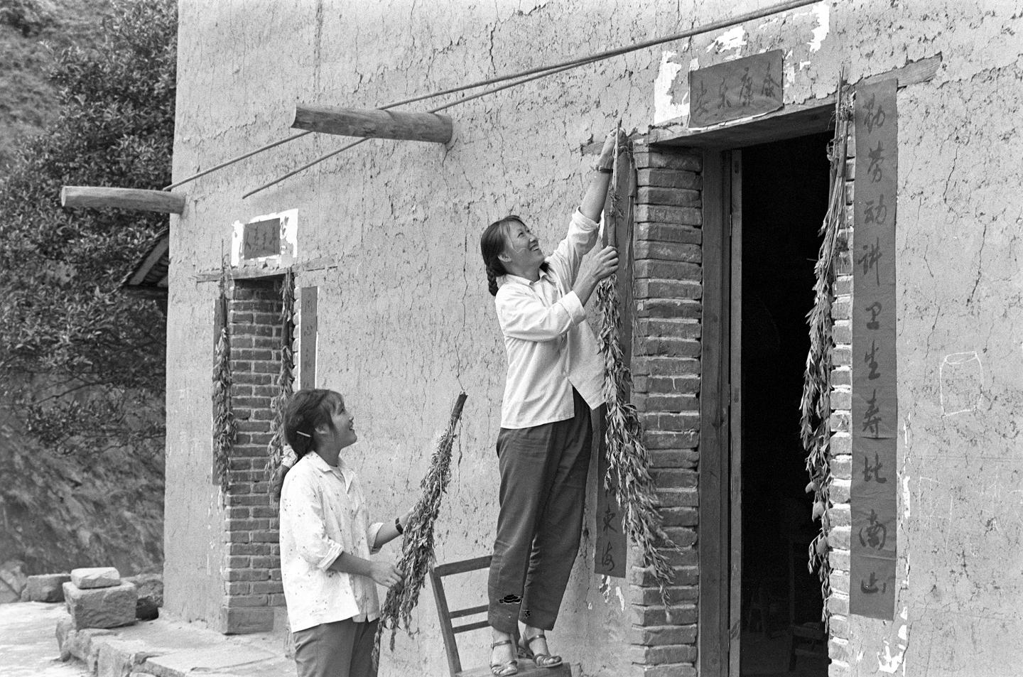 1982年,湖北秭归一户人家在门上挂上艾蒿、菖蒲。