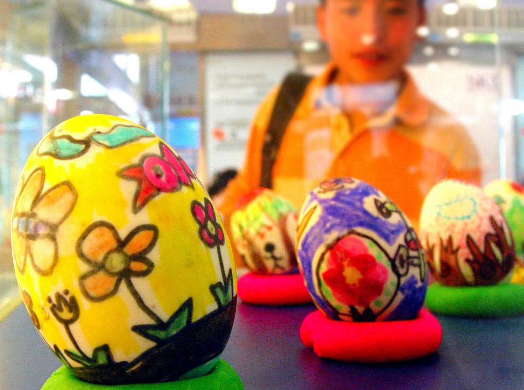 2004年6月22日,南京一商家展出的彩蛋引起人们的兴趣。端午节吃鸭蛋是南京等地人们的传统习俗。