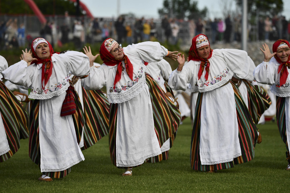 当日,爱沙尼亚约赫维举行舞蹈庆典,来自约100个舞蹈团体的1200余名舞者参与了活动。