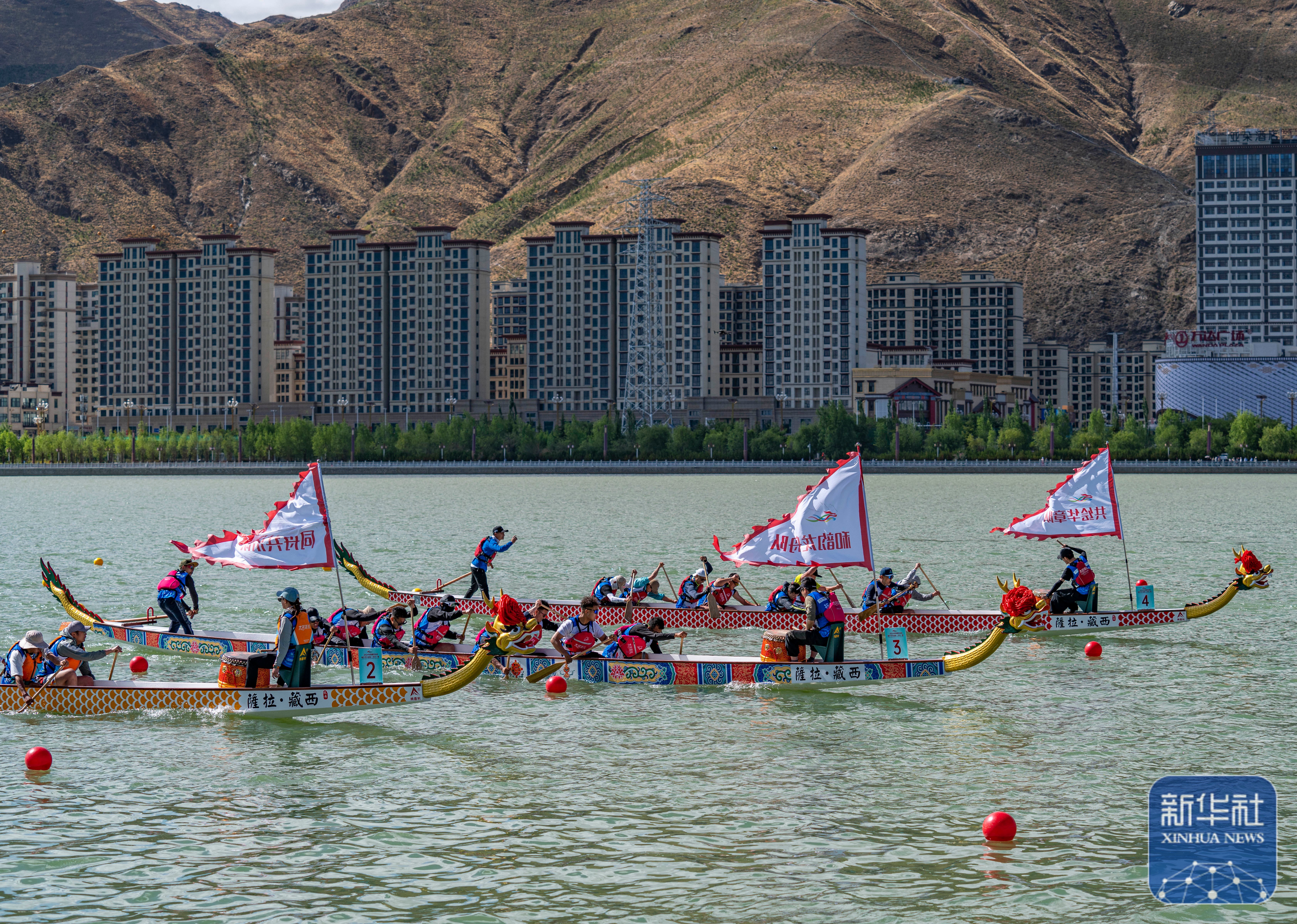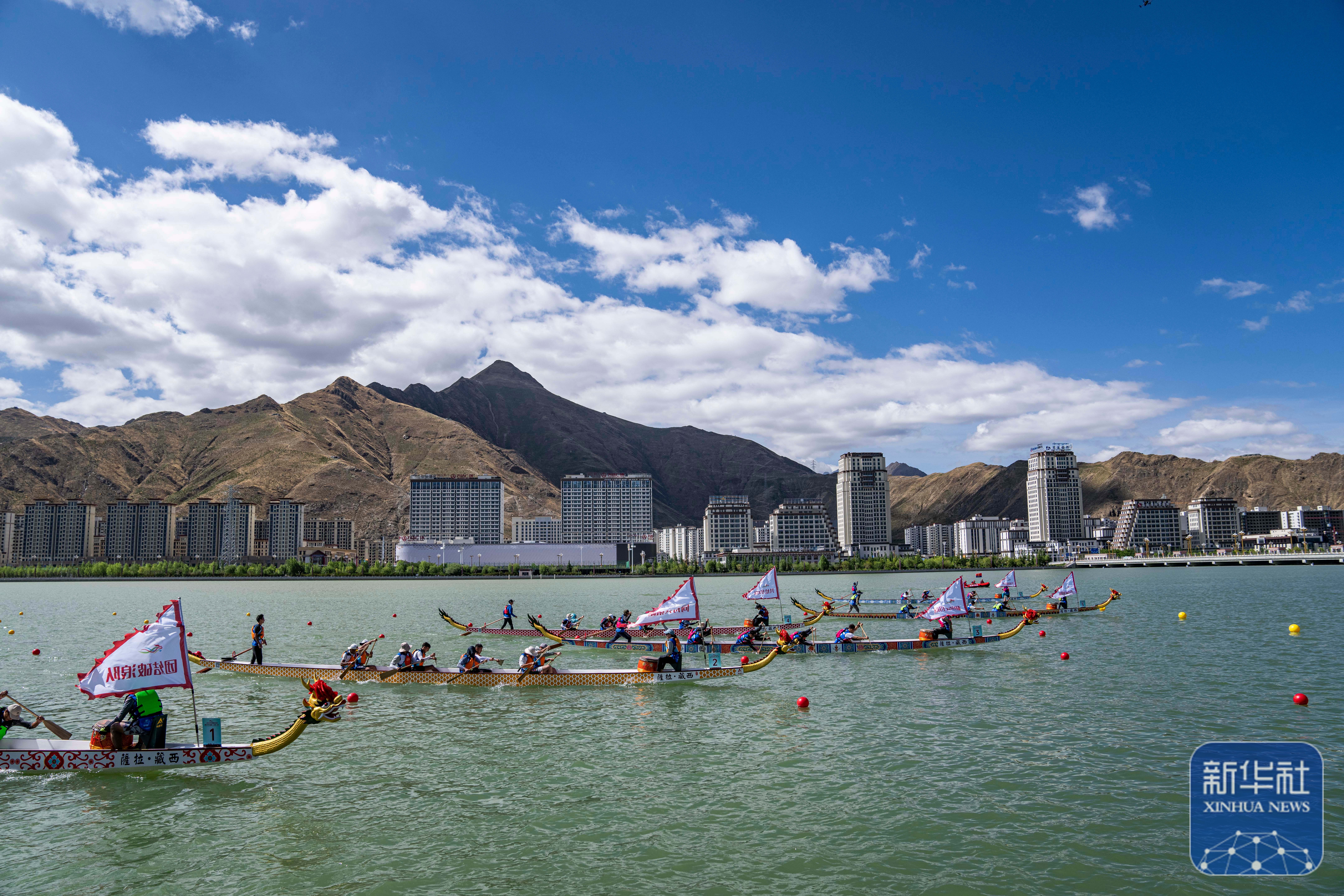 6月9日,2024年西藏自治区端午节牛皮船(龙舟)赛在拉萨滨河公园水域举行,共有来自西藏自治区的26支代表队参加,其中牛皮船队伍20支、龙舟队伍6支。这是在拉萨首次举办的中国海拔最高的城市龙舟赛。
