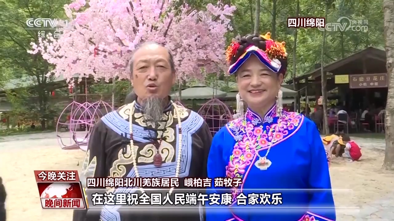 四川绵阳北川羌族居民峨柏吉茹牧子:在这里祝全国人民端午安康,合家欢乐。祝福全天下的人没痛没病,平平安安,吉祥如意。