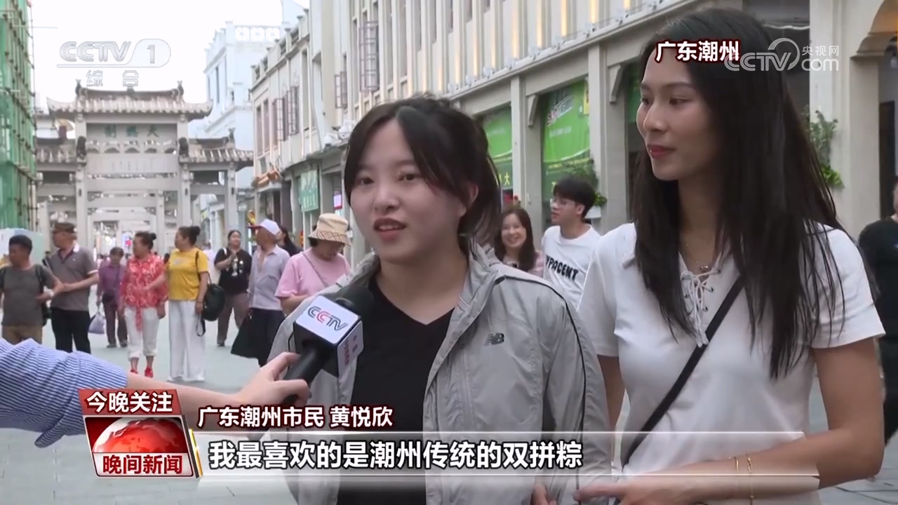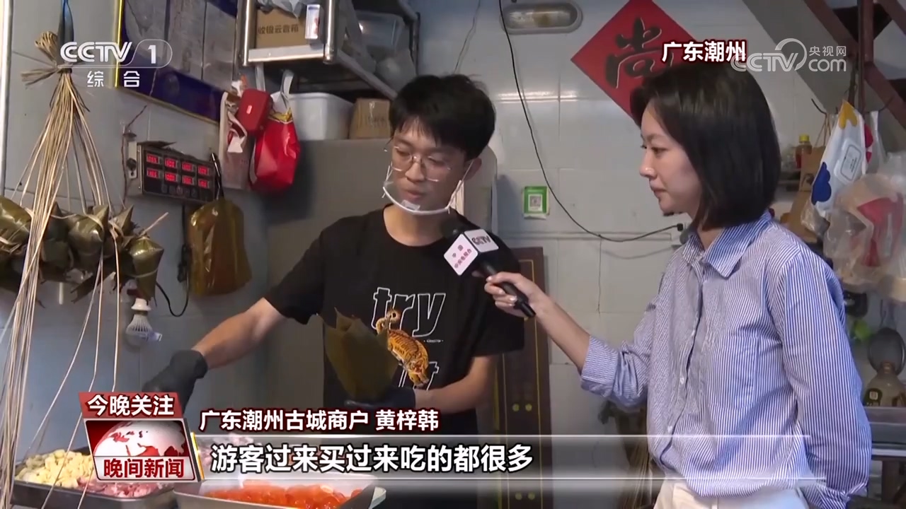 广东潮州古城商户黄梓韩:游客过来买过来吃的都很多,邮寄的回去的也很多,每天粽子包多一点,让全国的各地的游客多尝试一下我们潮州的美食。