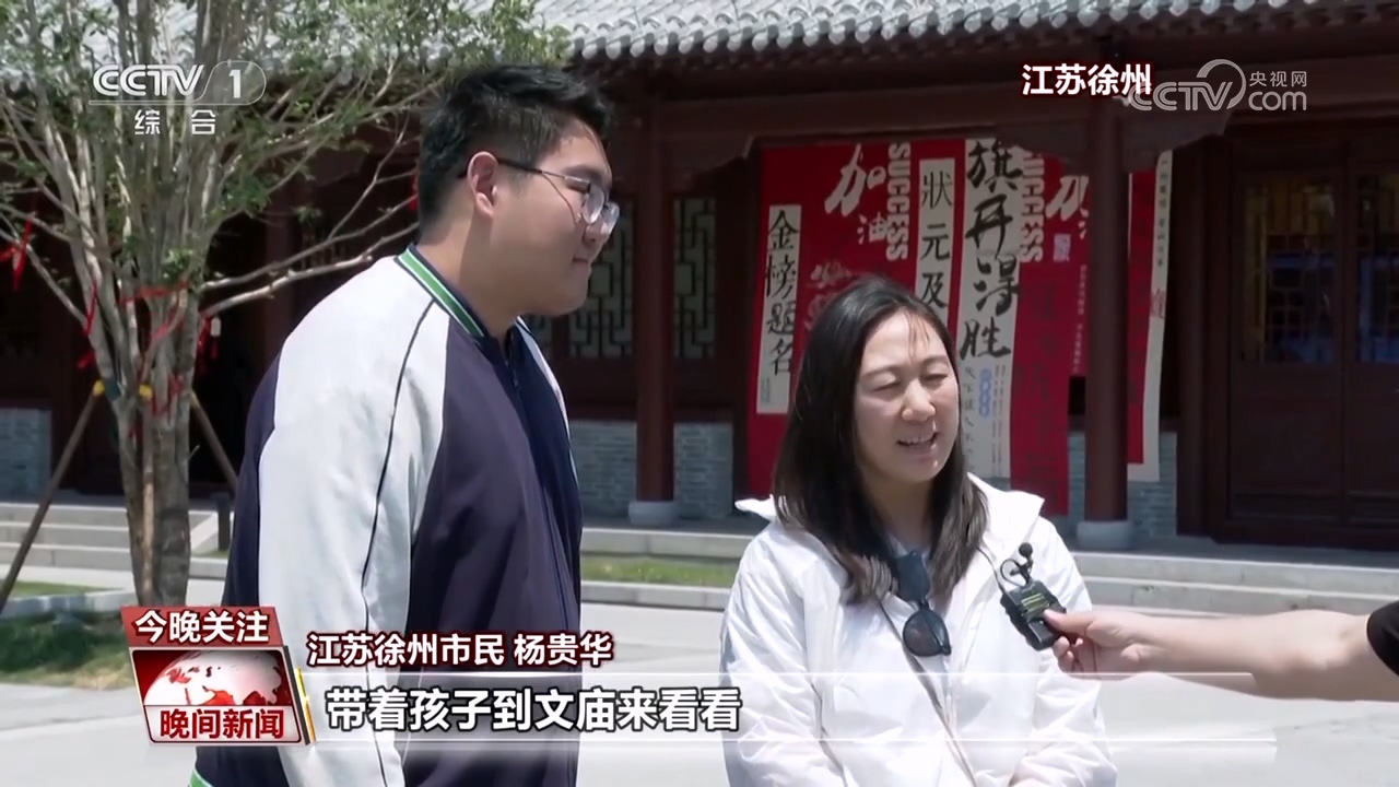 江苏徐州市民杨贵华:端午节期间,带着孩子到文庙来看看。