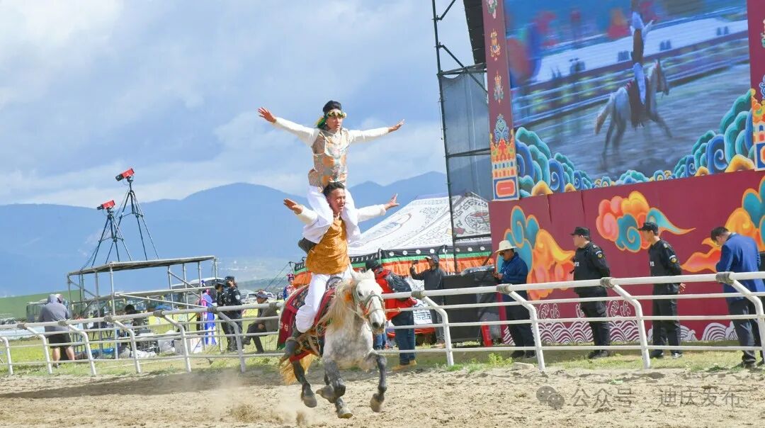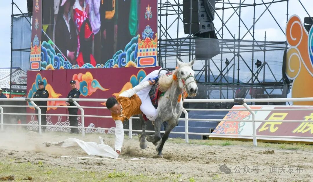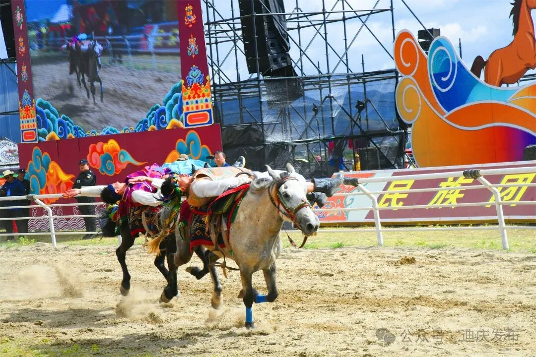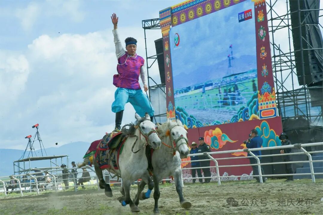 在《赞马迎端阳》的歌声中,来自州民族歌舞团的演员表达了龙马奔腾、奋蹄筑梦的梦想,祝愿迪庆明天更加美好。《格萨尔礼赞》《马帮情》《飞马情》等歌舞表演,展现了迪庆马文化的源远流长。随后《世界的香格里拉》以及来自德钦的弦子表演以及维西的《阿尺目刮》等节目,向远方来客展示了迪庆多元灿烂的民族文化。在歌曲《56个民族同唱敬酒歌》中文艺表演到此结束,迪庆各族儿女共同祝愿祖国繁荣富强。