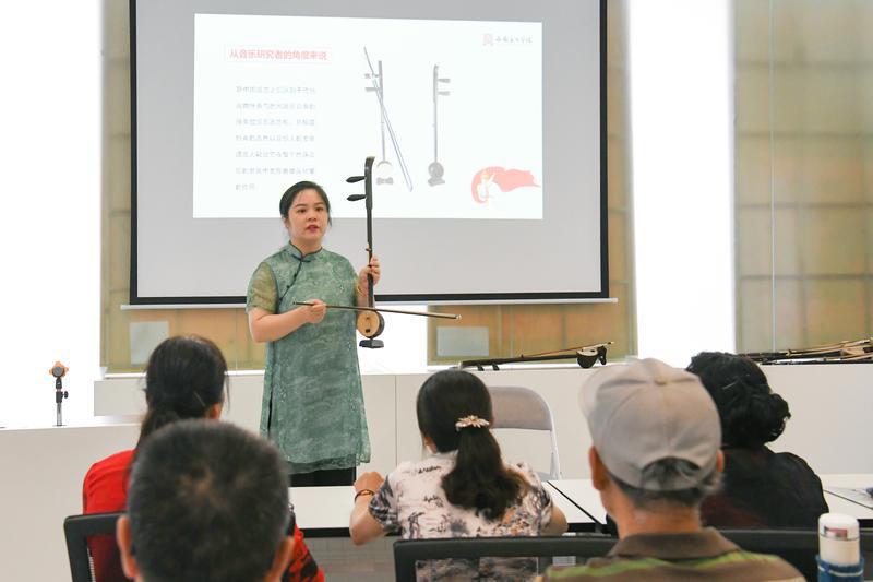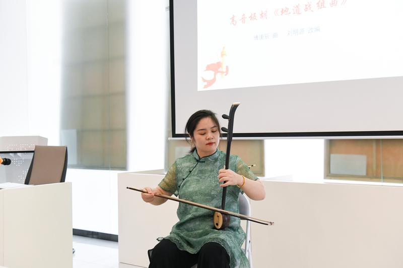 活动邀请了西安音乐学院板胡、二胡专业讲师安静,以《地道战组曲》《红军哥哥回来了》《边区的太阳红又红》等板胡红色经典音乐作品为主线,采用“理论授课+音乐作品展演”的形式,为大家献上一场有温度、有品质、有内涵的音乐赏析课。通过板胡演奏,带领现场学员在享受音乐熏陶的同时,了解歌曲的创作背景、思想内涵、时代意义。