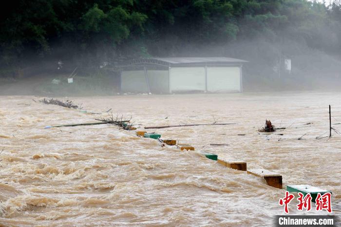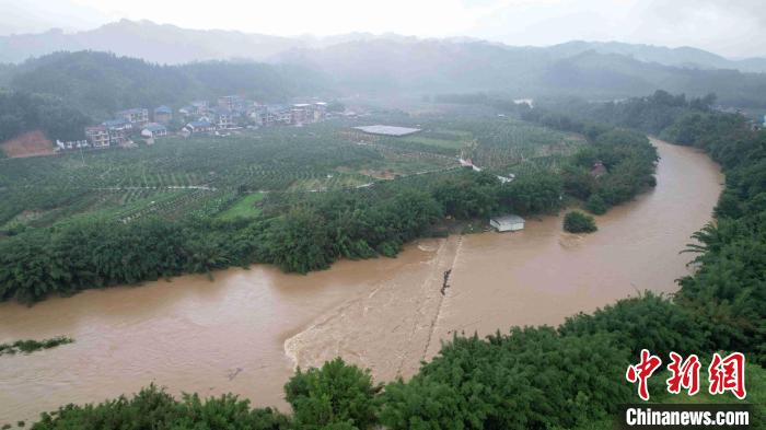 6月14日,在广西柳州市融安县大将镇,融江支流浪溪江水位上涨,江水浑浊。谭凯兴摄
