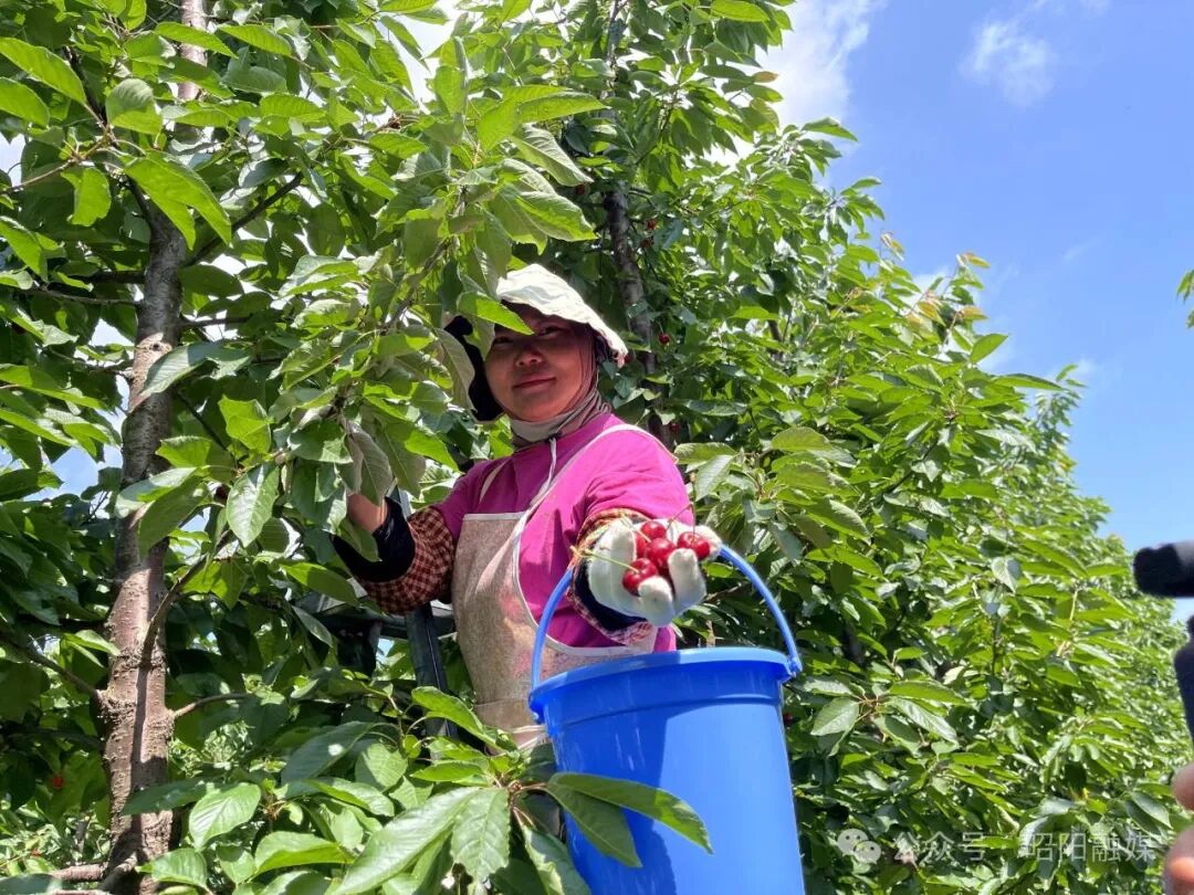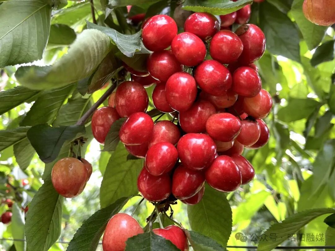 每年六月,云南昭通市昭阳区布嘎乡花鹿坪村的500亩车厘子陆续成熟进入采摘期。车厘子种植基地位于景风水库附近,走进果林,一颗颗、一串串红色的车厘子挂满枝头,像一颗颗晶莹剔透的红玛瑙。