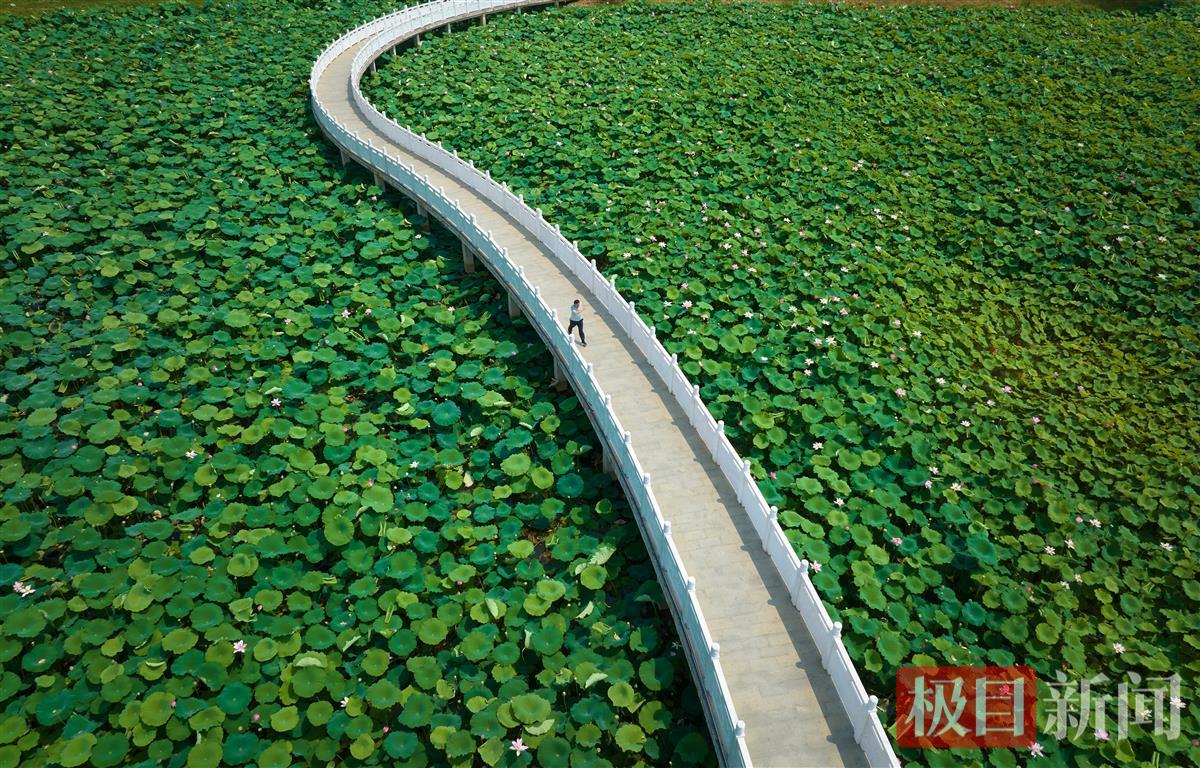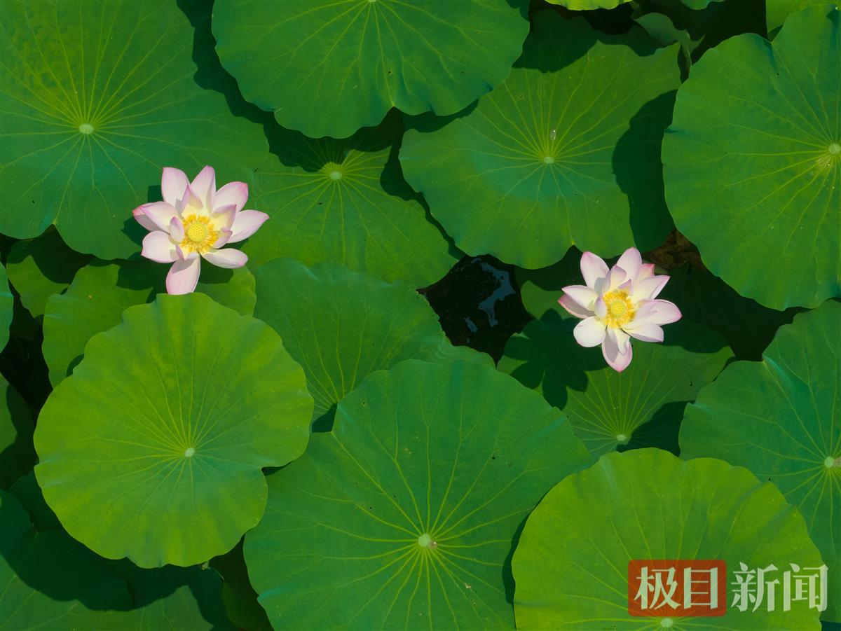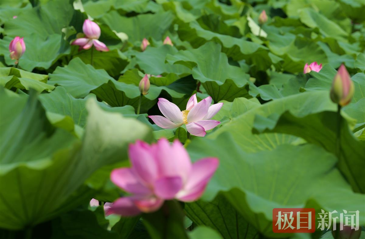 日前,武汉市江夏区的谭鑫培公园内荷花竞相绽放,为炎炎夏日带来清新质感。6月15日,极目新闻记者在公园内看到,6000余平方米的荷塘中,翠绿的荷叶层层叠叠,其间点缀着朵朵荷花,或含苞待放,或半藏半露,娇艳欲滴,尽显娉婷风姿。