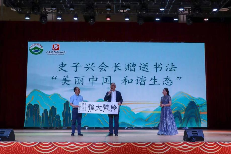 活动开场之际,广东生态工程职业学院邹建军与广东省朗诵协会会长史子兴一起,共同为广东省朗诵协会、广东生态工程职业学院“校园经典诵读艺术实践基地”揭牌,史子兴会长还为活动赠送“聆听大雅”墨宝。