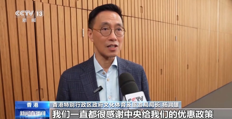 香港特别行政区政府文化体育及旅游局局长 杨润雄:我们一直都很感谢中央给我们的优惠政策,我们一定要好好利用好这些政策,好好做好我们的服务,让我们旅客有一个好的感受。