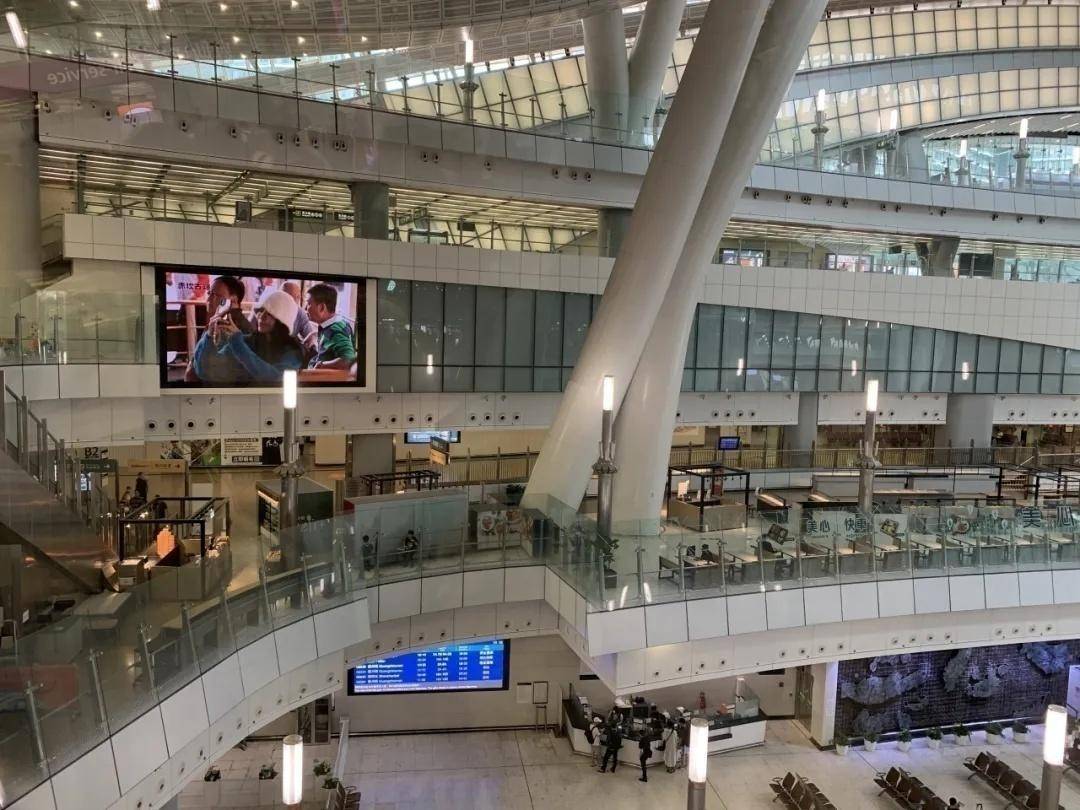 检票口上方的颜色条。红色为“待检票”,绿色为“正在检票”。