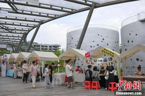 6月16日,大运河边小河公园的文旅集市吸引游人,这里已由工业油库蝶变为主题公园。