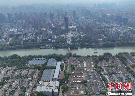 6月14日,拱宸桥附近,工业遗产老厂房再利用,成为运河博物馆群。(无人机照片)