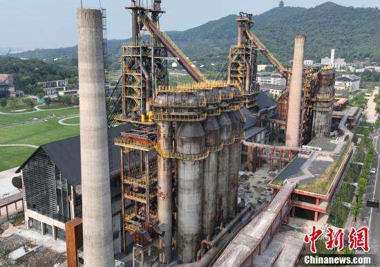 6月13日,杭钢停止运行的高炉外,环境优良。杭钢旧址经过多年的改造升级,如今迎来涅槃,成为杭州大运河国家文化公园重点建设项目。(无人机照片)