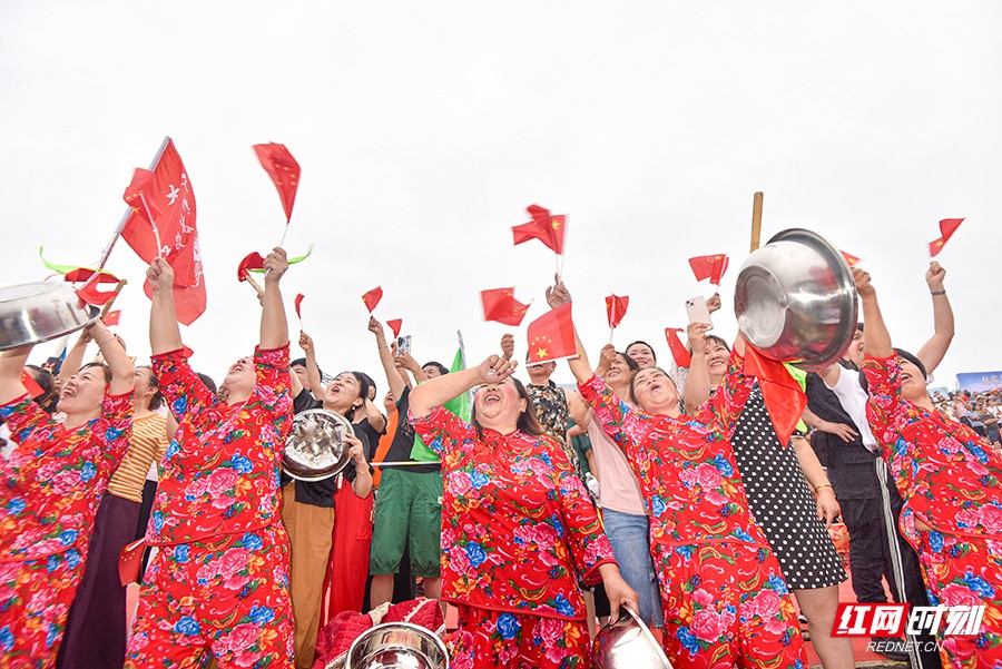 河面上,选手们动作划一、挥桨如飞,演奏了一场劈波斩浪、奋楫争先的“交响乐”;岸边观众也被选手们的速度与激情点燃,吆喝声和加油声一浪接一浪。两者相映成趣,构成了一幅乡情浓浓的龙舟竞渡风俗画。