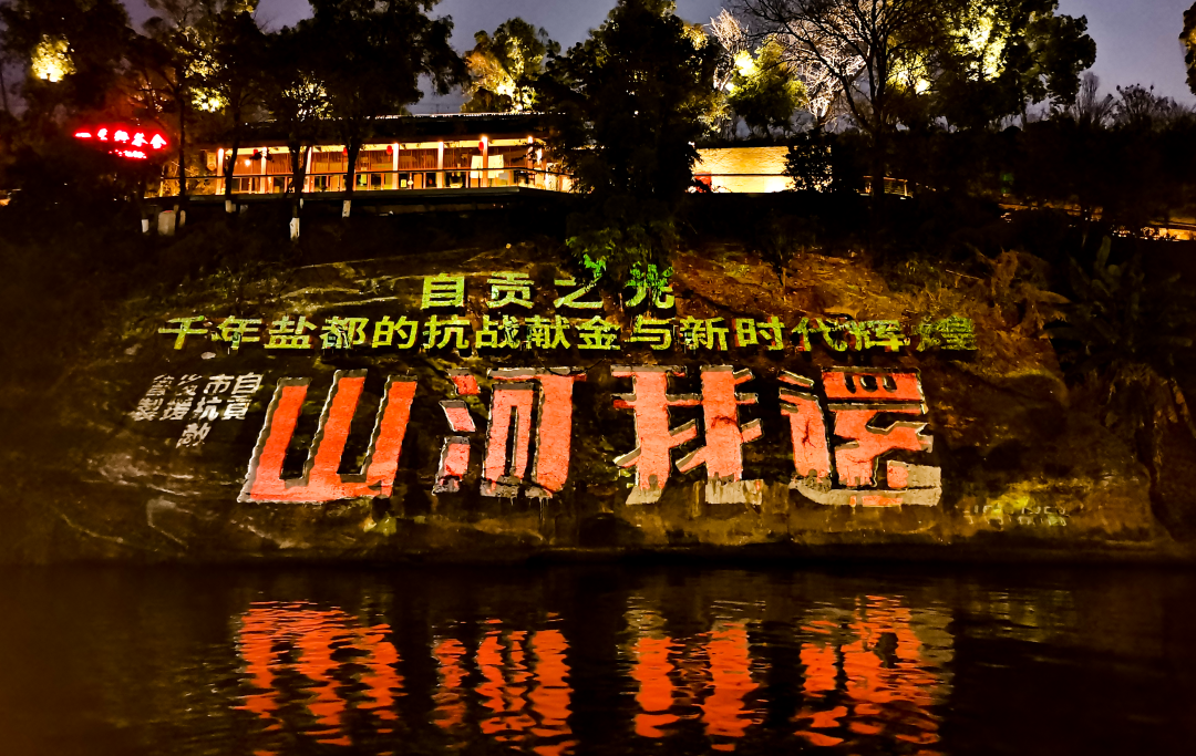 夜晚可来到毛家坝大桥,乘船夜游釜溪。夜游釜溪,以“井盐文化”为主题,以游船为游览载体,以传统彩灯和现代光影为文化表现形式,带您体验一场从“亿年古海”到“盛世盐都”的沉浸式主题夜游体验之旅。