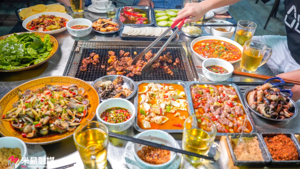 坐在烧烤店里