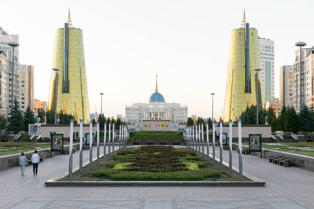 这是6月29日在哈萨克斯坦首都阿斯塔纳拍摄的哈萨克斯坦总统府。新华社记者 白雪骐 摄