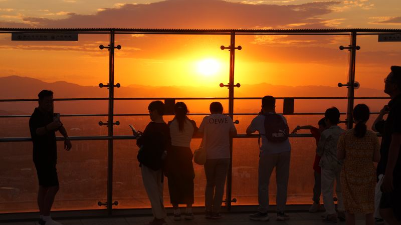 夏日的奥林匹克塔,游客们欣赏夕阳。朝阳区供图