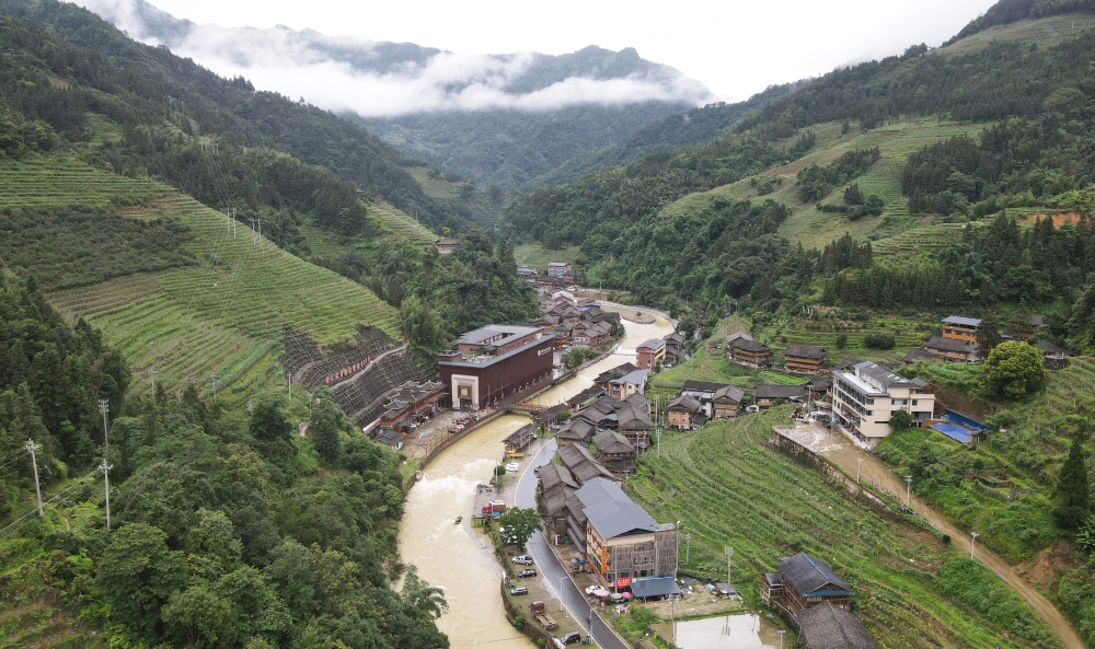 这是位于广西龙胜各族自治县龙脊镇的黄洛瑶寨(6月26日摄,无人机照片)。新华社记者 金皓原 摄