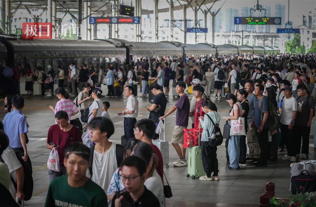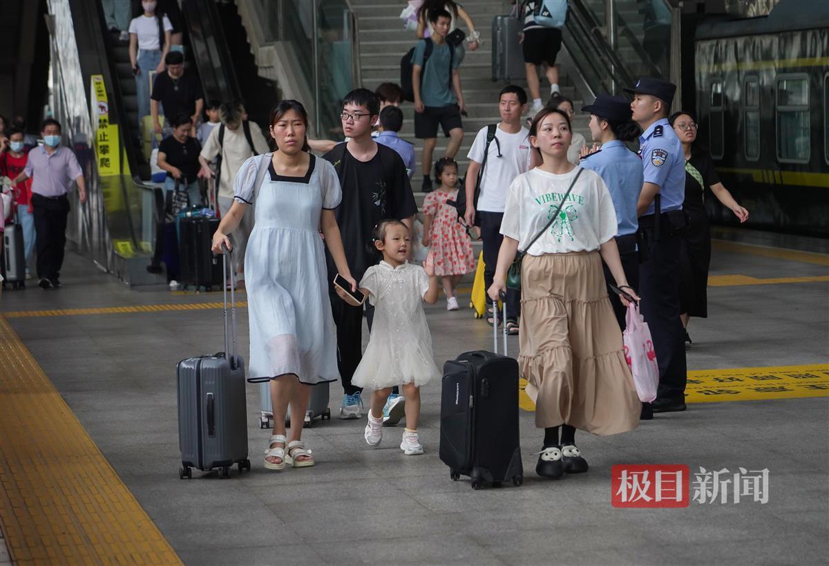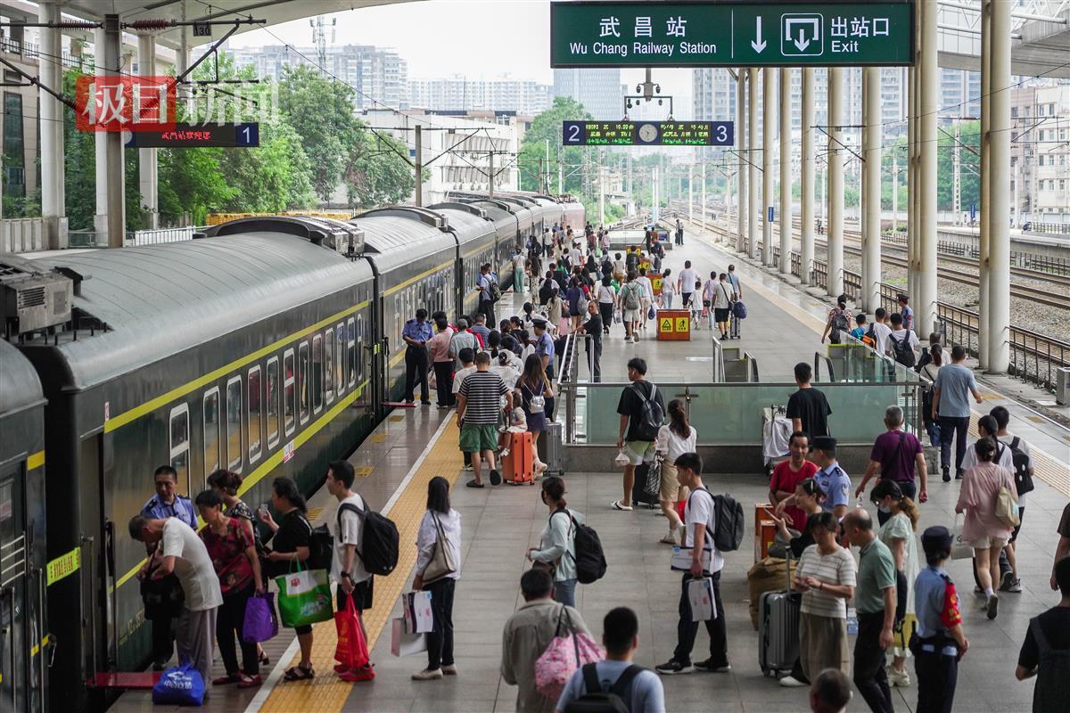 随着各大院校陆续放假,铁路迎来学生高峰客流。7月1日零时开始,2024年铁路暑期运输工作正式拉开帷幕,实行高峰运行图,至8月31日24时结束,共计62天。据了解,暑运期间,客流主要以学生流、旅游流、探亲流等为主,其中,前往宜昌、襄阳、神农架等城市避暑的旅客出行需求旺盛。武汉局集团公司计划增开列车56对,预计共发送旅客三千九百多万人次,日均发送旅客63.23万人次,同比增长3%。
