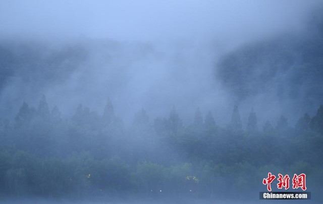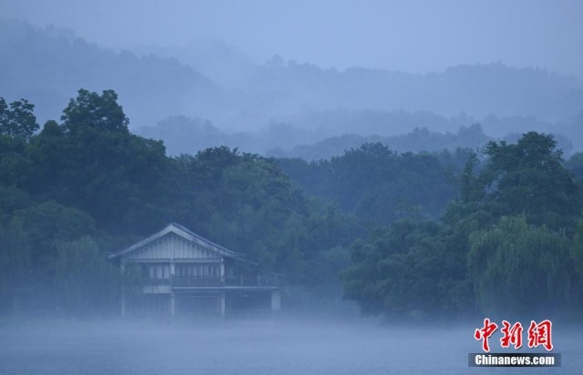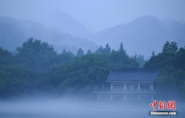 7月1日,雾气在西湖南山路升腾。当日,浙江杭州西湖在清晨时分云雾飘渺,蓝调时刻的景象如同江南烟雨水墨画,美不胜收。