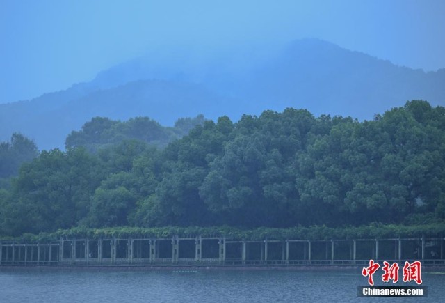 7月1日,西湖群山若隐若现。当日,浙江杭州西湖在清晨时分云雾飘渺,蓝调时刻的景象如同江南烟雨水墨画,美不胜收。