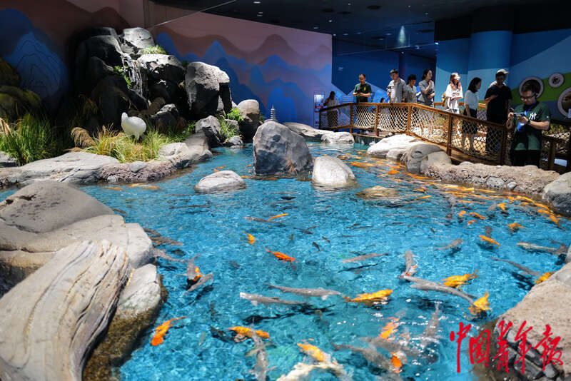 7月1日,江西省九江市湖口县长江鄱阳湖水生生物保护中心,游客在参观。在对公众开放展示的同时,这里也开展长江流域濒临灭绝的水生生物的保护、繁育、种子资源储备和科普工作。中青报·中青网记者 赵迪/摄