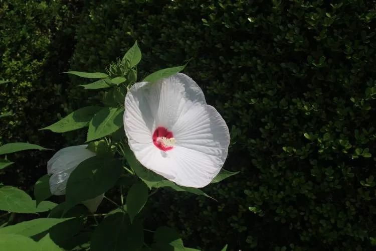 在植物大楼东北侧,布置了花境和各类夏季花卉组合,游客可以看到“紫柱”“粉雪纺”“杜威上将”等木槿品种6个和芙蓉葵品种2个。