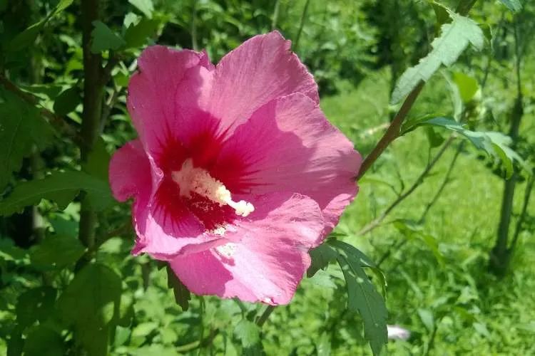 在北区夏景园内,游客可以观赏到从欧洲引进的木槿品种40个,以重瓣类和蓝色系、白色系为主,如“蓝雪纺”“薰衣草雪纺”“玛丽娜”等。这些品种不仅有良好的观赏特性,还能多次开花,开花量也较大。