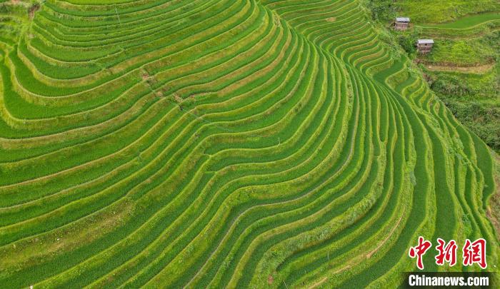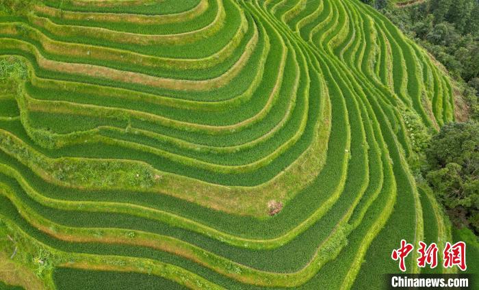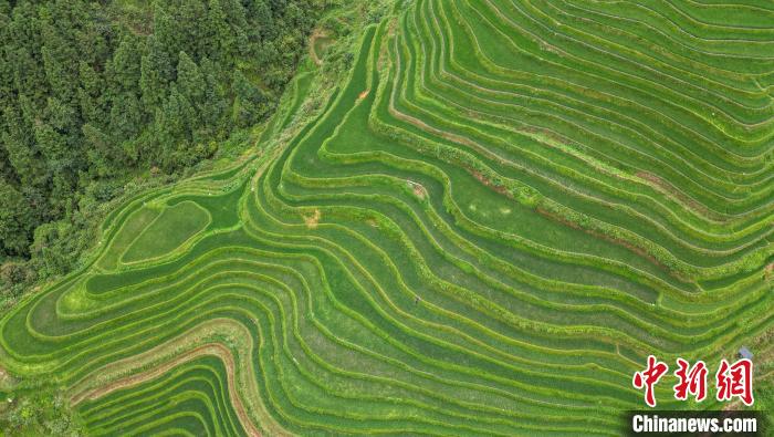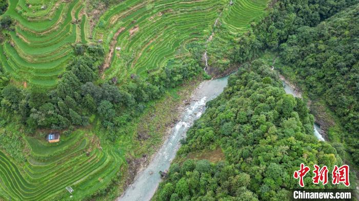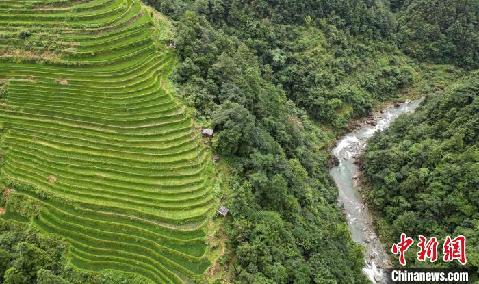 仲夏时节,贵州省黔东南苗族侗族自治州从江县加勉乡境内的梯田绿意盎然,与河流、青山相映成趣,构成一幅美丽的生态画卷。卢忠南摄