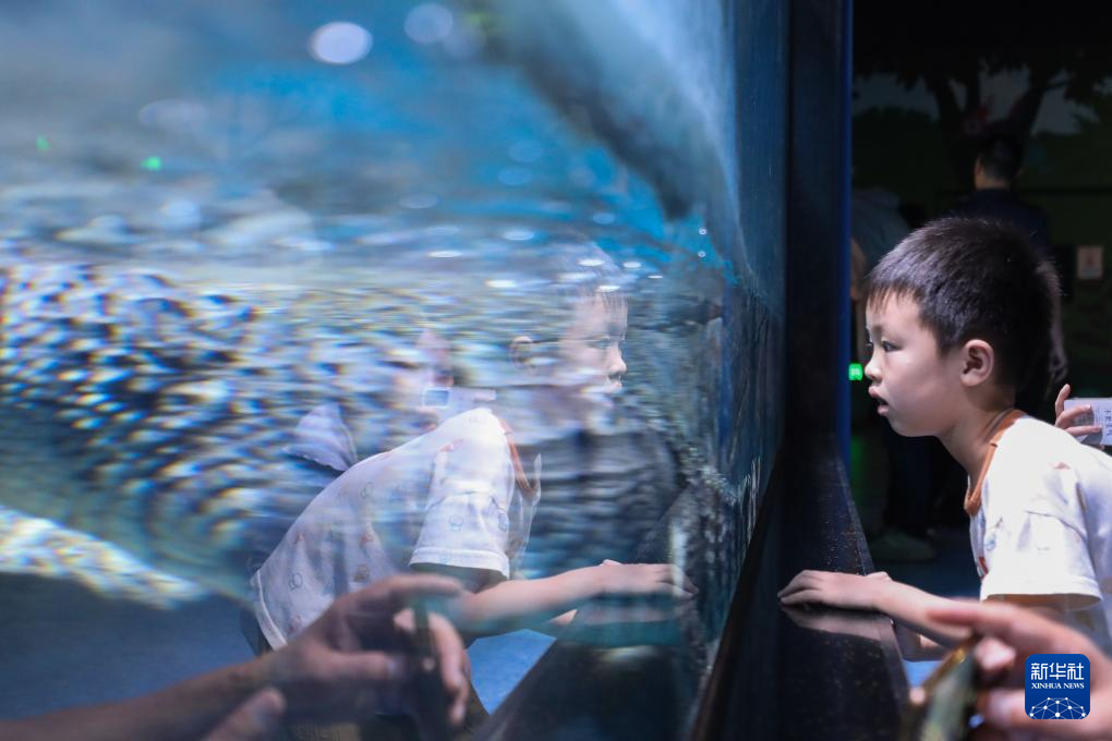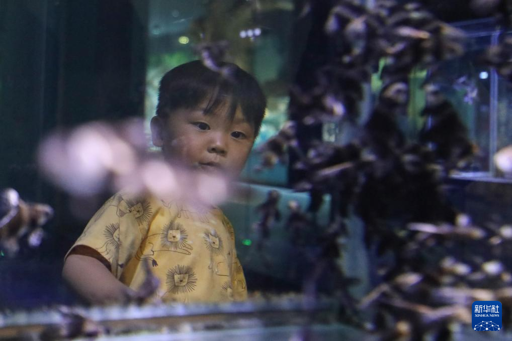7月1日,小朋友在长江鄱阳湖水生生物保护中心参观。