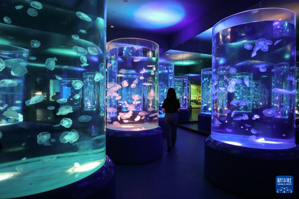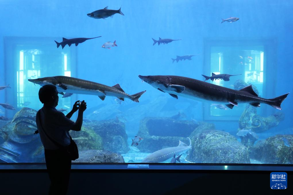 7月1日,游客在长江鄱阳湖水生生物保护中心参观。