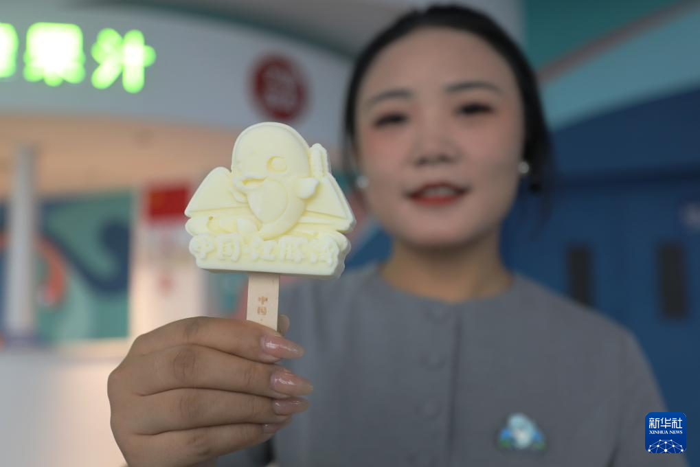 7月1日,长江鄱阳湖水生生物保护中心工作人员展示文创雪糕产品。