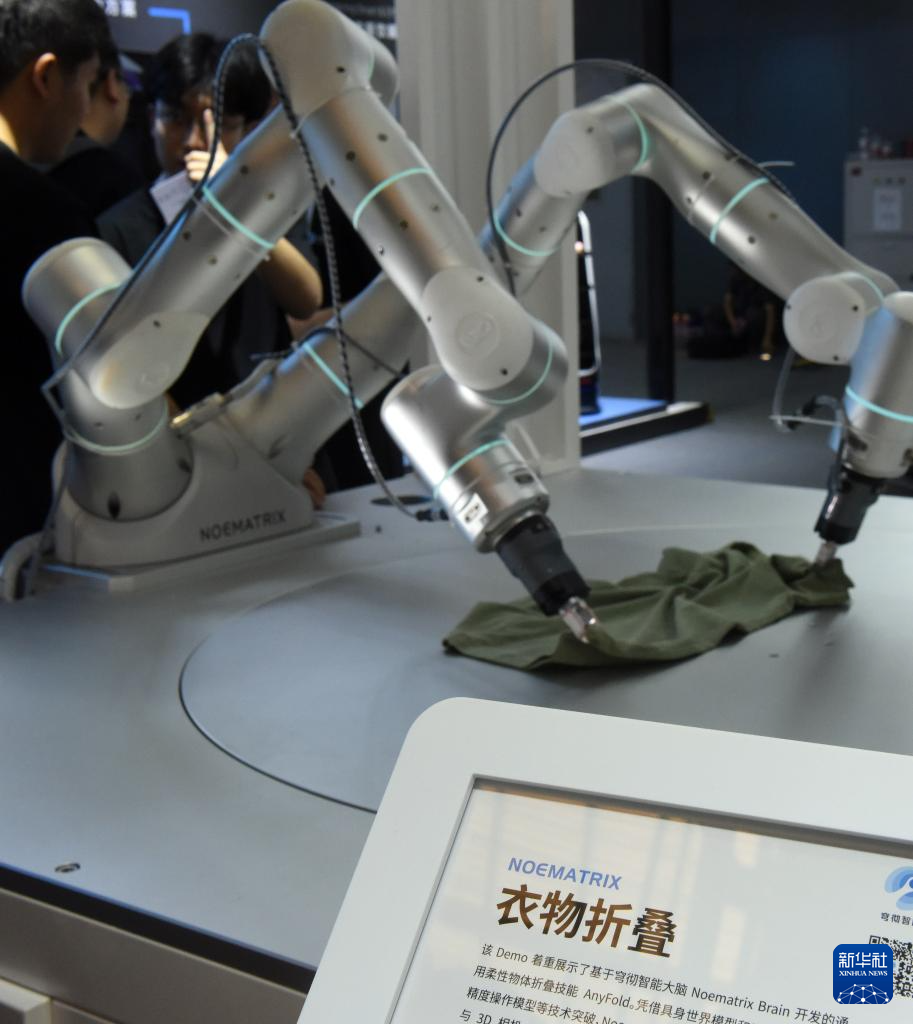 7月4日在展会上拍摄的智能衣物折叠机器人。