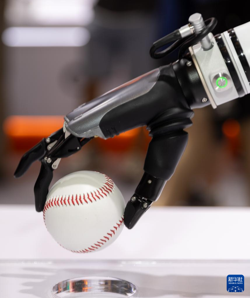 7月4日在2024世界人工智能大会傲意科技展位拍摄的机器人灵巧手。