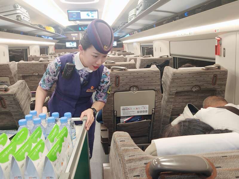 7月5日,山东多地普降大雨,济南、淄博等地出现大到暴雨,青岛客运段闻讯而动,见雨为号,各科室、车队密切关注天气变化情况,对晚点时间较长的列车及时申请紧急供餐,保证旅客饮食正常,运用5G高清摄像头,对列车情况进行分析,出现应急情况时,第一时间给予指导,让旅客乘车安心、服务舒心。翟祚珩/摄。