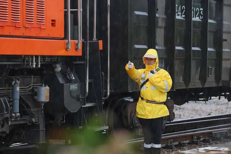 7月6日,临沂地区普降大雨,临沂车务段立即成立青年团员突击队,对重点部位、重点处所巡视检查。严格执行标准化程序及用语,协同配合,高效完成车列的预检、解体及编组作业,确保运输安全有序。陈龙国/摄。