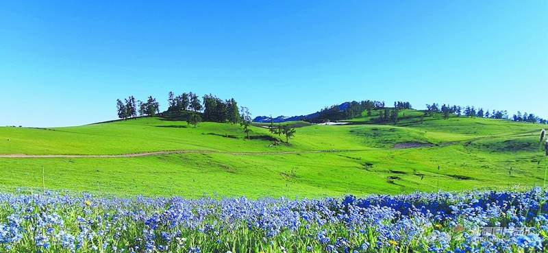夏日的布尔津县玉什塔斯生态牧场绿草如茵,野花盛开,景色宜人(6月21日摄)。加尔恒·阿热帕摄