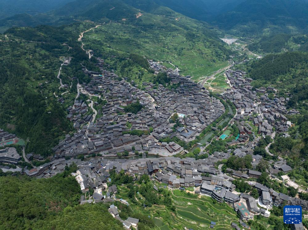 这是7月9日拍摄的西江千户苗寨全景(无人机照片)。