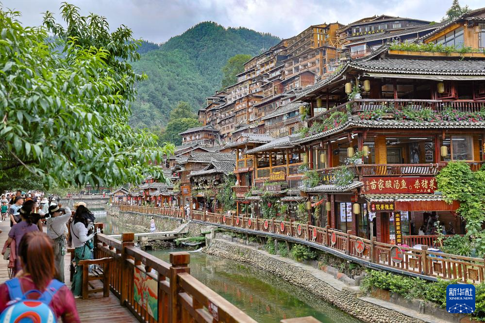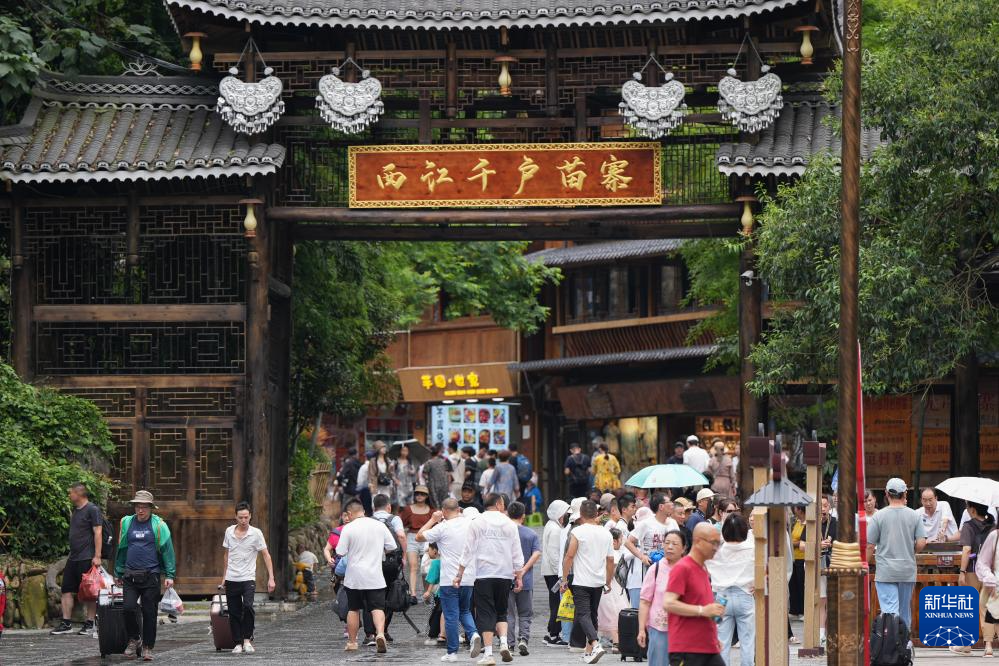 7月9日,游客在西江千户苗寨游玩。
