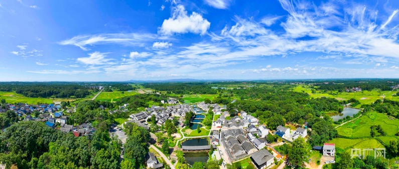 央广网吉安7月10日消息(记者胡斐见习记者郇康新通讯员张文馨)近日,记者在江西省吉安市吉州区的桥镇钓源古村看到,晴空下,村庄被绿树环绕,古民居与田园、村道、树林交相辉映,美如画卷。
