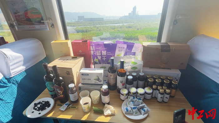 列车工作人员现场带货,展品被一扫而空。