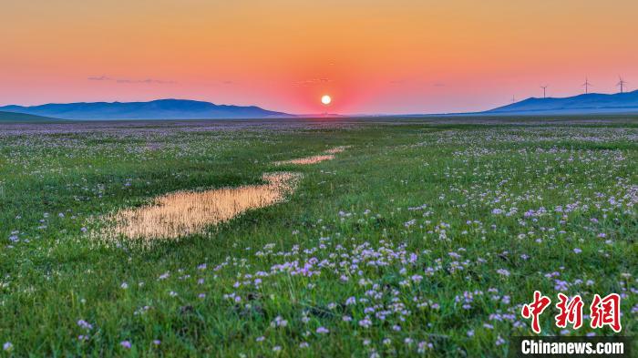 近日,内蒙古扎鲁特草原,夕阳下的风景。仲夏时节,内蒙古通辽市扎鲁特旗草原郁郁葱葱,鲜花盛开。极目远眺,黄的、蓝的、紫的野花装点着绿色的原野,牛羊如珍珠撒满山坡,勾勒出一幅绝美的草原牧歌图,令人心旷神怡。青格乐摄
