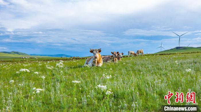 近日,内蒙古扎鲁特草原,牛群享受着绿色与宁静。仲夏时节,内蒙古通辽市扎鲁特旗草原郁郁葱葱,鲜花盛开。极目远眺,黄的、蓝的、紫的野花装点着绿色的原野,牛羊如珍珠撒满山坡,勾勒出一幅绝美的草原牧歌图,令人心旷神怡。白敖敏摄