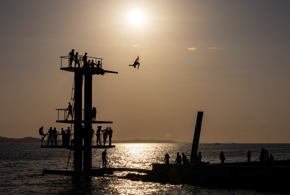7月13日,在克罗地亚扎达尔,人们从跳台跳入亚得里亚海消暑。新华社/路透