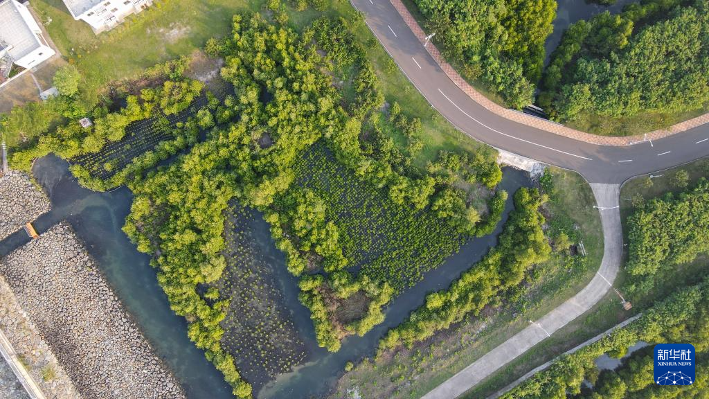 这是7月16日在印度尼西亚万丹省西冷爪哇7号项目附近海域拍摄的红树林(无人机照片)。