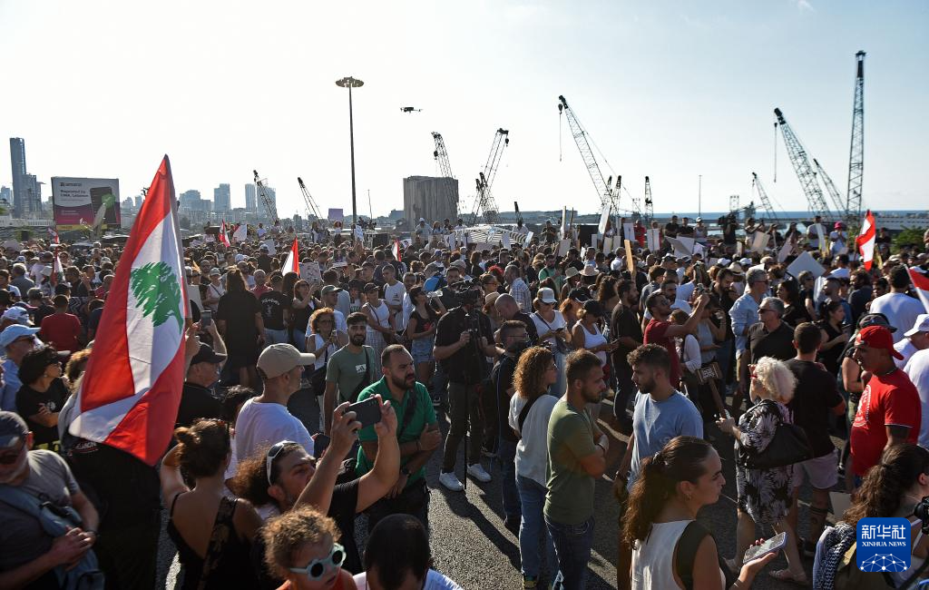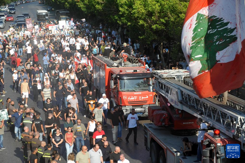 8月4日,人们在黎巴嫩贝鲁特参加爆炸事件纪念活动。