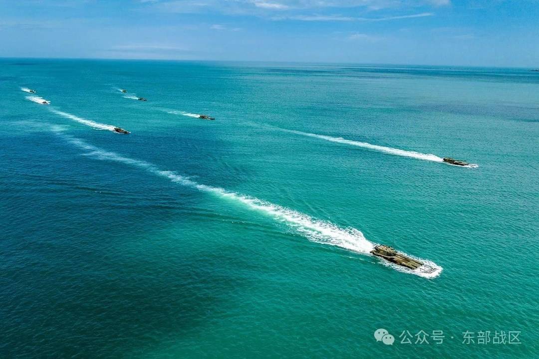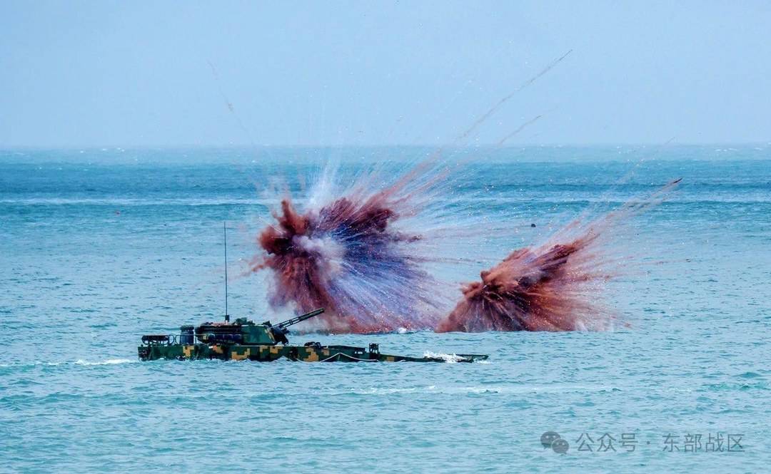 两栖战车如蛟龙驶入大海